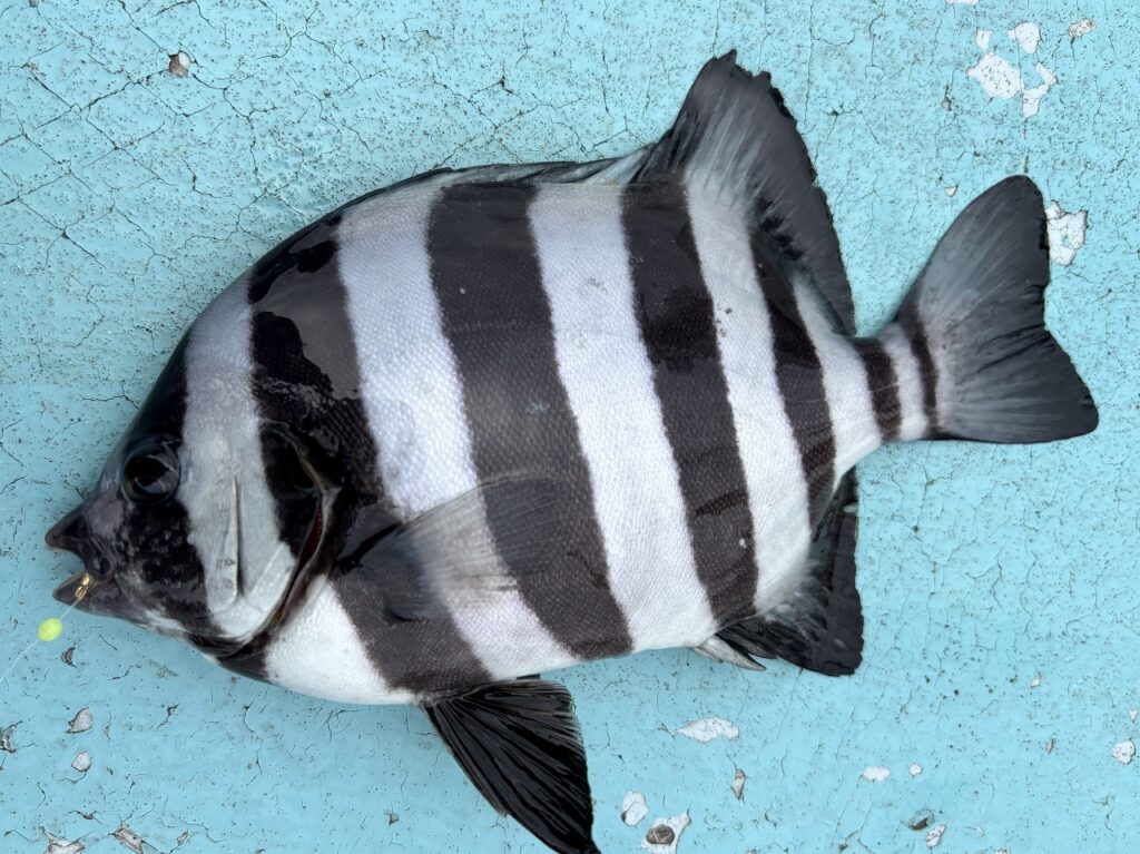 イサキより下の棚のイメージと聞き、下棚も狙いやっと可愛らしいイシダイの姿が見えました!しかし本命はこの1枚でフィニッシュ。