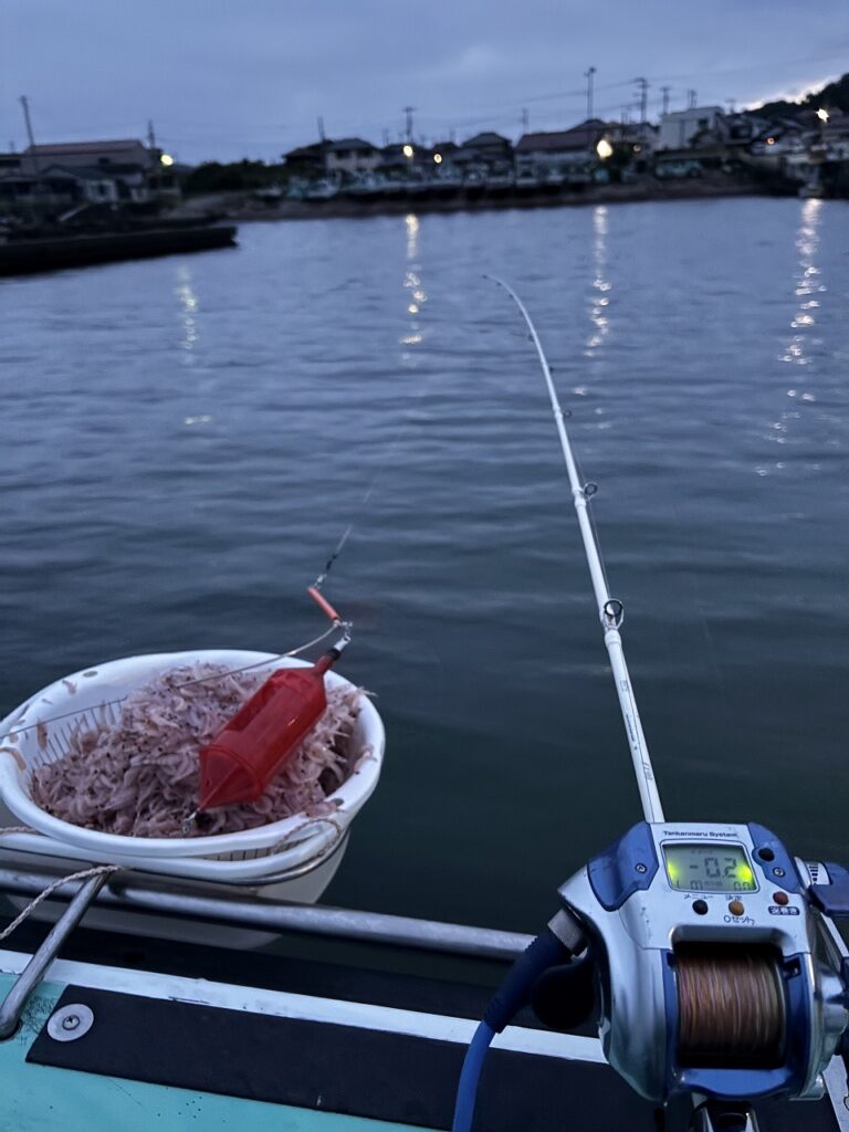 ポイントは15分程ですぐ近く。今回はオキアミコマセ組とバチコン組に分かれてイサキを釣ります。