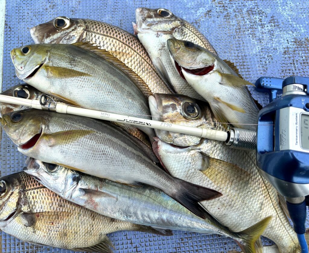 アタリを捉えて、何の魚が掛かったのかなと、引きを楽しみながら巻くテンヤ釣りの楽しさを改めて感じました。