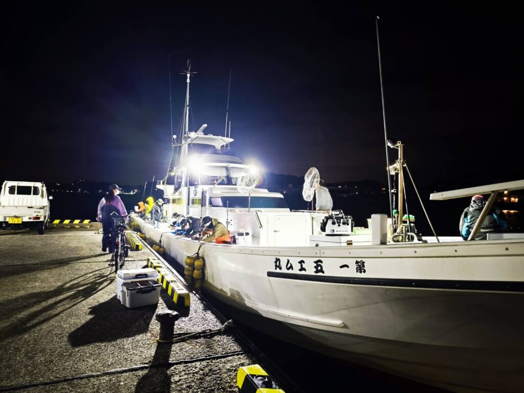4時過ぎに港へ到着すると、釣り人たちが用意を始めています。