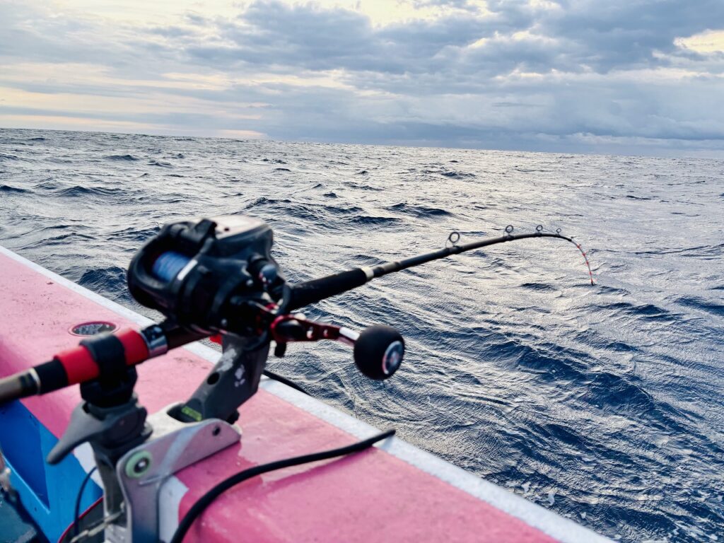 5時前には出船。まだ真っ暗な海を疾走します。ポイント迄は30分程度で到着。