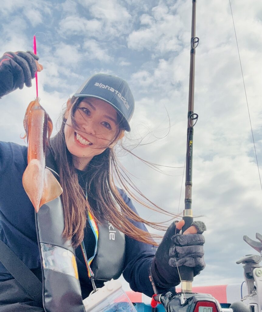 リールを巻きながら竿先を下げ、またしゃくりあげるを繰り返し、イカがいる棚を探ります。中乗りさんからボトム付近が良いと聞き、3m位までを重点的に調べることにしましたが暫しアタリなく、たまに船内で上がる程度…。懸命にしゃくりますがイカの応答なく‥。