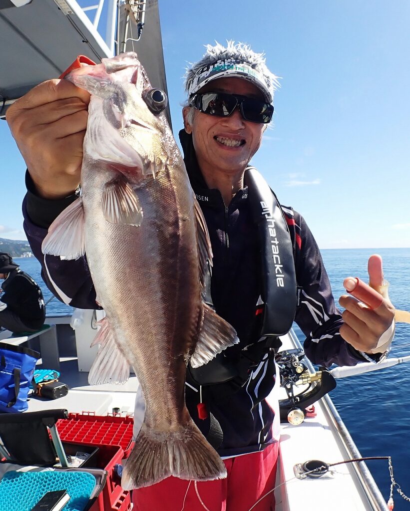これを見て即座にアラ用天秤仕掛にチェンジしたメンバーが2kg級を追釣、更に中小が次々取り込まれ、この日は0,8~9,5kgが船中14本。アカムツは終ぞ姿を見せなかったが、劇的な1日となった。