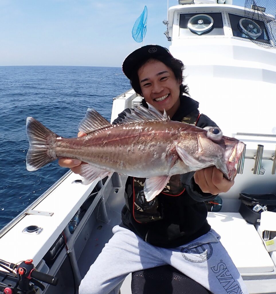 アラ以外にもアカムツ、鬼カサゴ、アマダイなど中深場メインで出船する安貞丸。600mラインのアコウダイ等も可能(要相談)