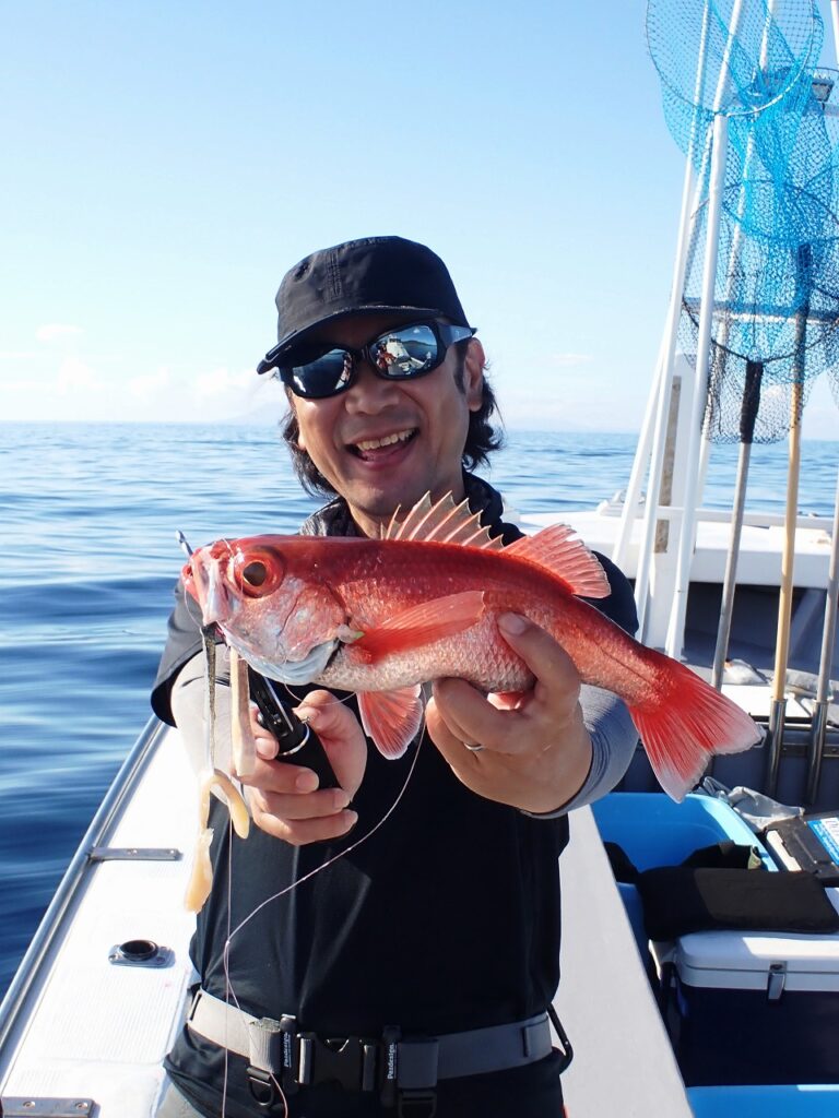 朝一アルファタックル川添モニターがアカムツ。今日は君じゃない!?と微苦笑