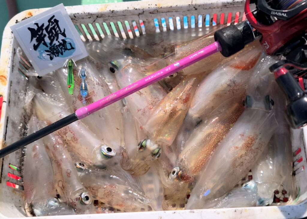 各メーカー様の新作スッテもリリースされ始め、いよいよアルファのニューロッドも発売されたので行ってきました剣崎江奈港『瀬戸丸』さん。平日でも12名の乗船とこの釣りの人気の高さを感じます!