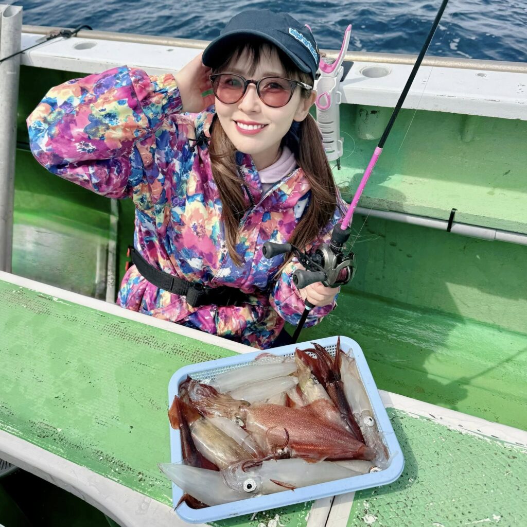 リールのメカや、最後にはオトコの手まで、あまり見栄えのしない写真ばかりだったのでwww、せめて最後は井上直美さんにご登場いただきましょう。実はこのアルファソニックCPは、昨年、井上直美さんと自分がマルイカをはじめ、色々な釣りでテストを重ねてきました。自分も井上直美さんも、もうこのリールがないと生きていけない?くらいのお気に入りになってしまいました。