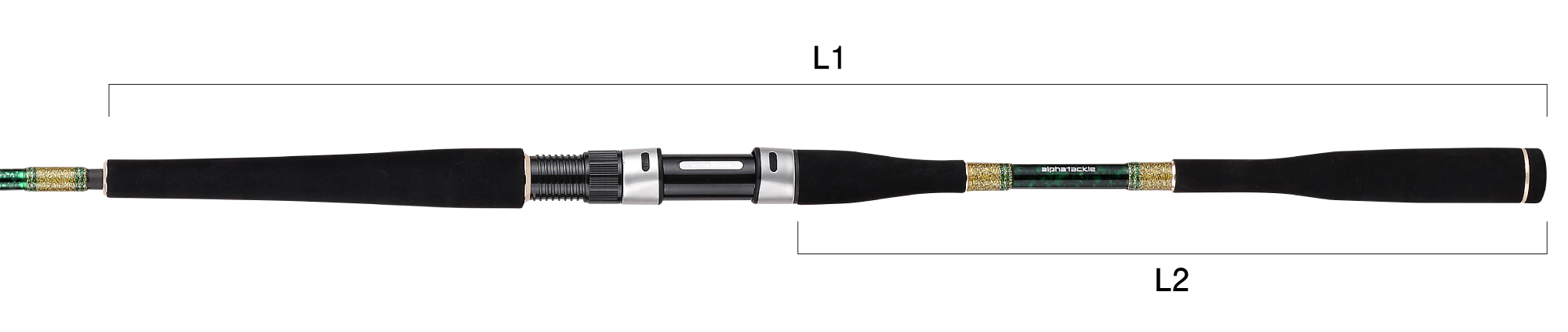 | 全長(m) | 継数(本) | 仕舞(cm) | 標準自重(g) | 先径(mm) | 元径(mm) | 錘負荷(号) | L1(mm) | L2(mm) | メーカー希望小売価格(円) | JANコード |