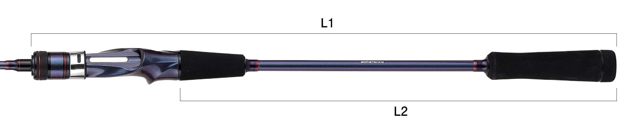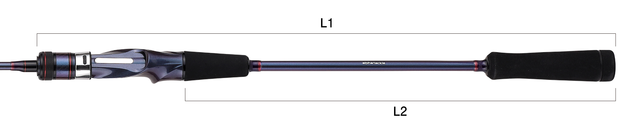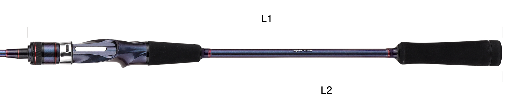 | 全長 (m) | 継数 (本) | 仕舞 (cm) | 標準自重 (g) | 先径 (mm) | 元径 (mm) | 錘負荷 (号) | L1(mm) | L2(mm) | メーカー希望 小売価格(円) | JANコード |