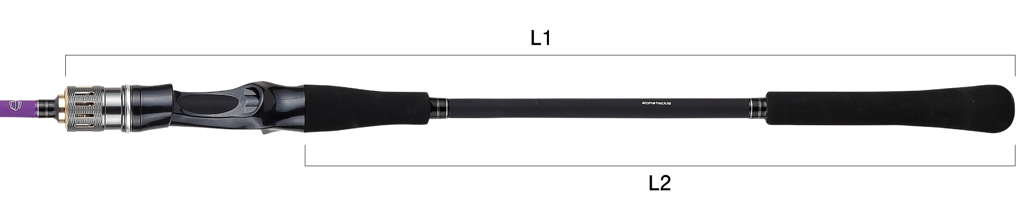 | 全長(m) | 継数 (本) | 仕舞 (cm) | 標準自重 (g) | 先径 (mm) | 元径 (mm) | 錘負荷 (号) | L1(mm) | L2(mm) | メーカー希望 小売価格(円) | JANコード |