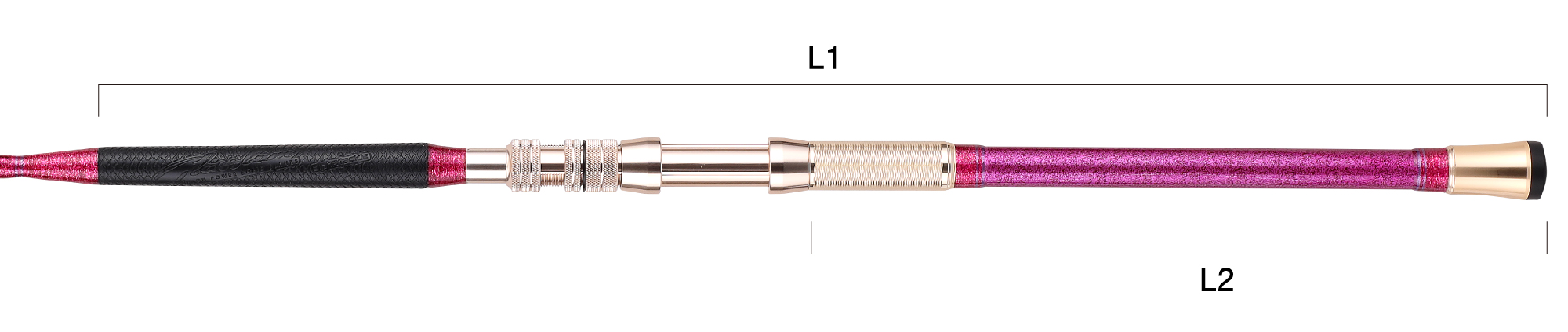 | 全長 (m) | 継数 (本) | 仕舞 (cm) | 標準自重 (g) | 先径 (mm) | 元径 (mm) | 錘負荷 (号) | L1(mm) | L2(mm) | メーカー希望 小売価格(円) | JANコード |