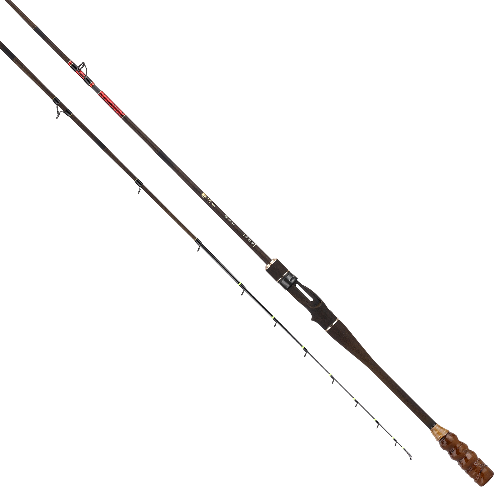 自然素材による一点物のハンドル、造り節を活かした意匠は、現代の釣りに和竿の精神を呼び戻す。