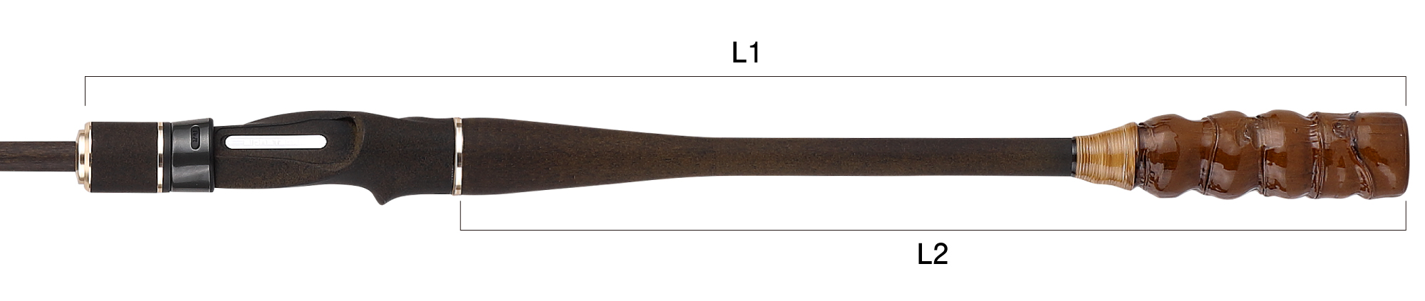 | 全長(m) | 継数 (本) | 仕舞 (cm) | 標準自重 (g) | 先径 (mm) | 元径 (mm) | 錘負荷 (号) | L1(mm) | L2(mm) | メーカー希望 小売価格(円) | JANコード |