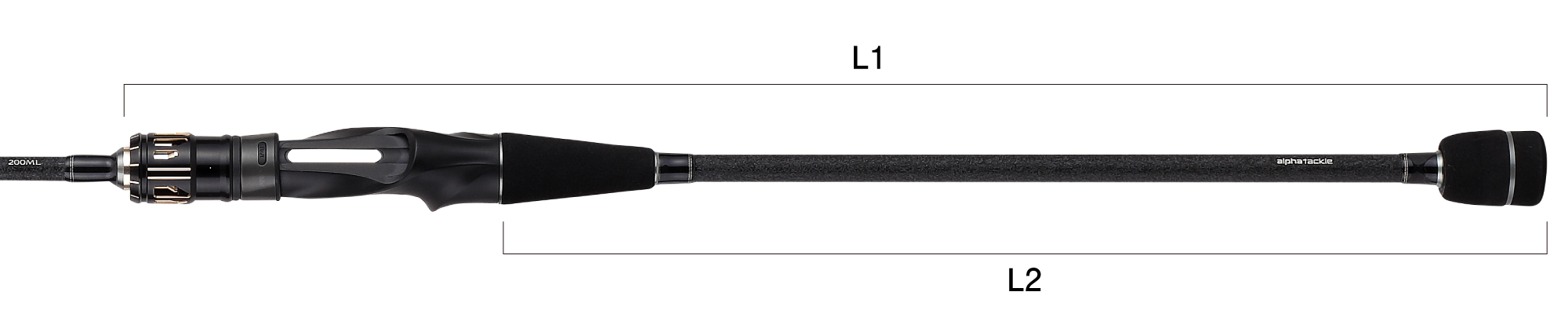 | 全長(m) | 継数 (本) | 仕舞 (cm) | 標準自重 (g) | 先径 (mm) | 元径 (mm) | 錘負荷 (号) | L1(mm) | L2(mm) | メーカー希望 小売価格(円) | JANコード |